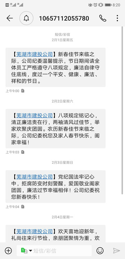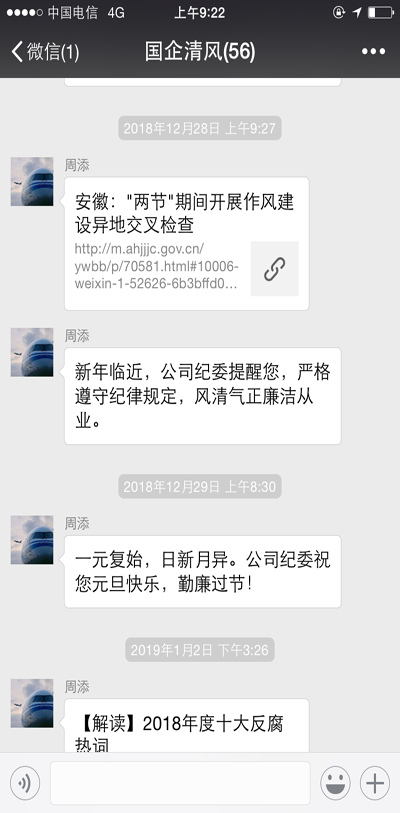 ▲通過微信、短信平臺發(fā)送元旦春節(jié)廉政短信,送出新年祝福的同時(shí)也送出了廉政提醒