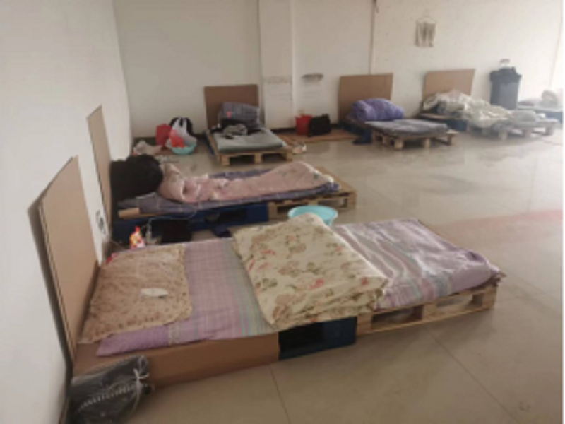 為滿足員工基本生活需求,公司將培訓(xùn)室、辦公室、會議室臨時改成員工休息室、開放公司淋浴房、搭建晾衣繩(桿)。