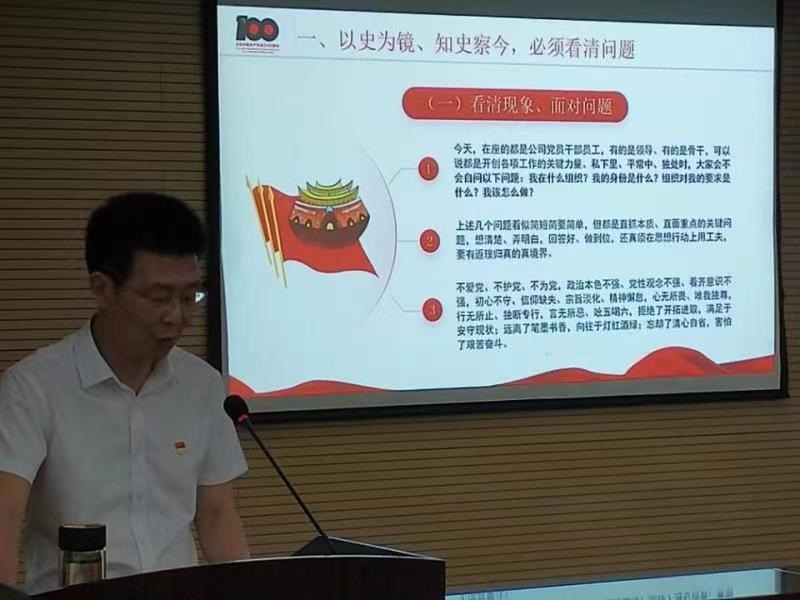 夏峰董事長以“以百年黨史砥礪初心使命在新征程上行大道擔大任成大器”為題講授專題黨課。報告從看清問題、守道明理、堅定理想、明德修身、擔當作為五個方面勉勵公司全體干部員工作為新時代的建設者,要從百年黨史中汲取奮進力量,從過往的足跡中獲得啟示,初心不改、信仰不墜、使命不忘,共同以臨淵履冰的敬畏之心扛起新時代高質(zhì)量發(fā)展的重任。